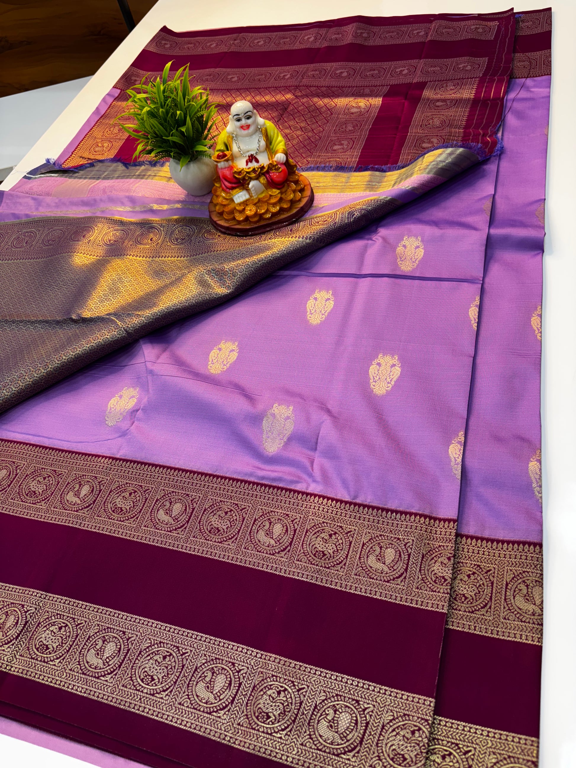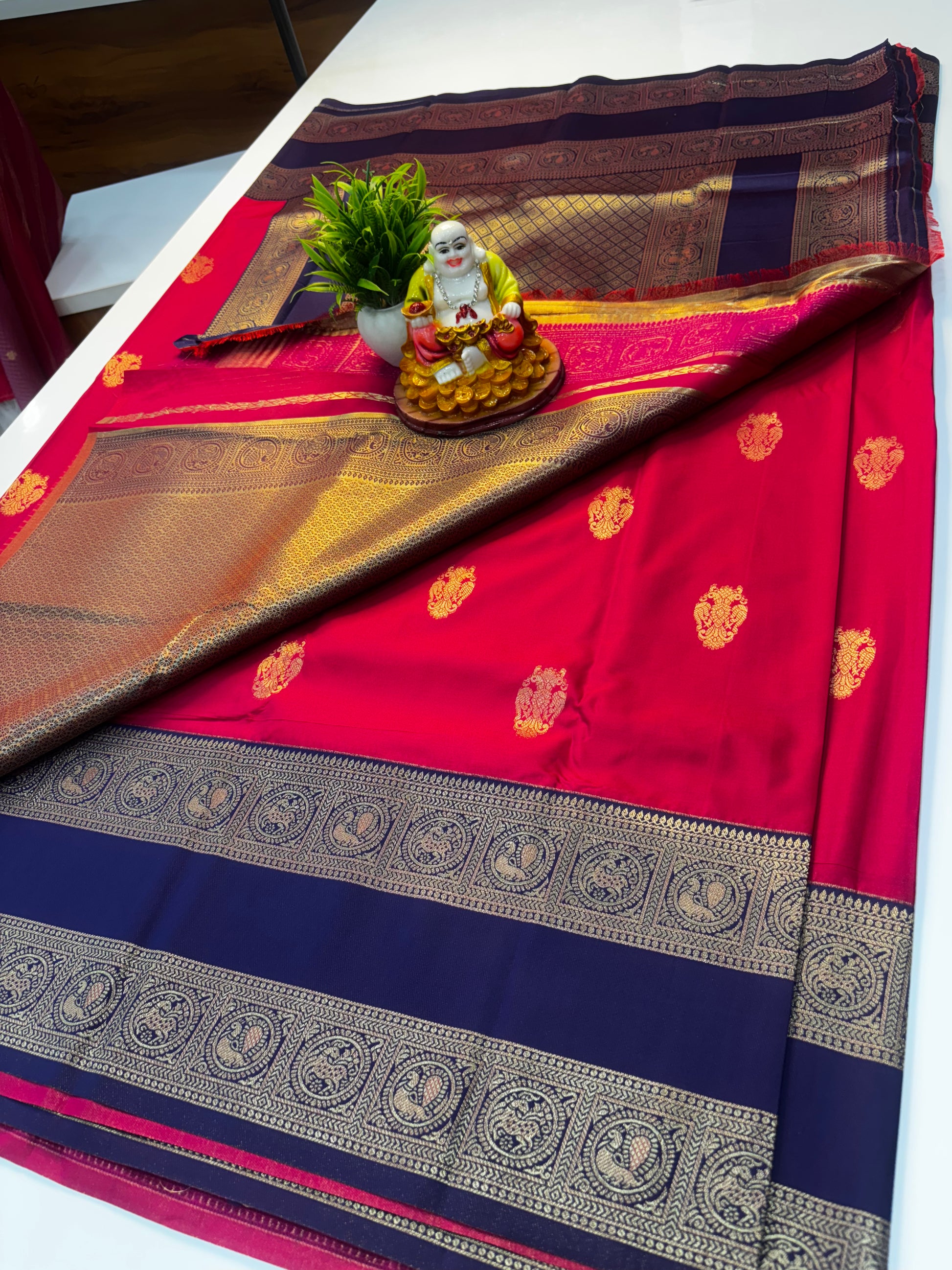 The luxurious fabric offers a graceful drape, while the richly woven pallu adds a regal touch, making it perfect for weddings, festive occasions, and special celebrations.