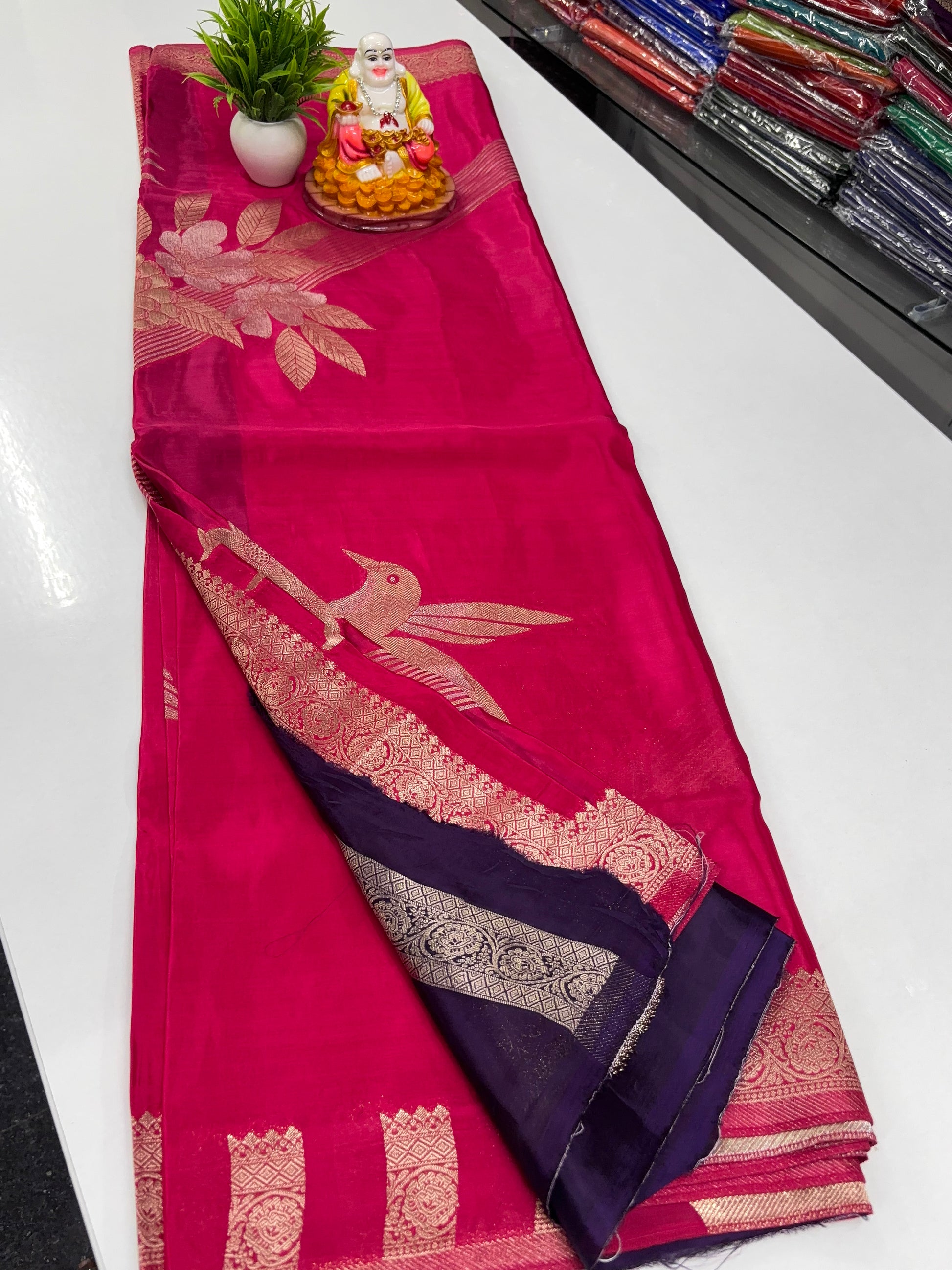 Elevate your ethnic wardrobe with this premium viscose saree, beautifully adorned with elegant bird and floral motifs that add a touch of nature-inspired charm. The saree features a luxurious rich pallu, enhancing its graceful appeal and making it perfect for festive occasions, celebrations, and elegant day wear.