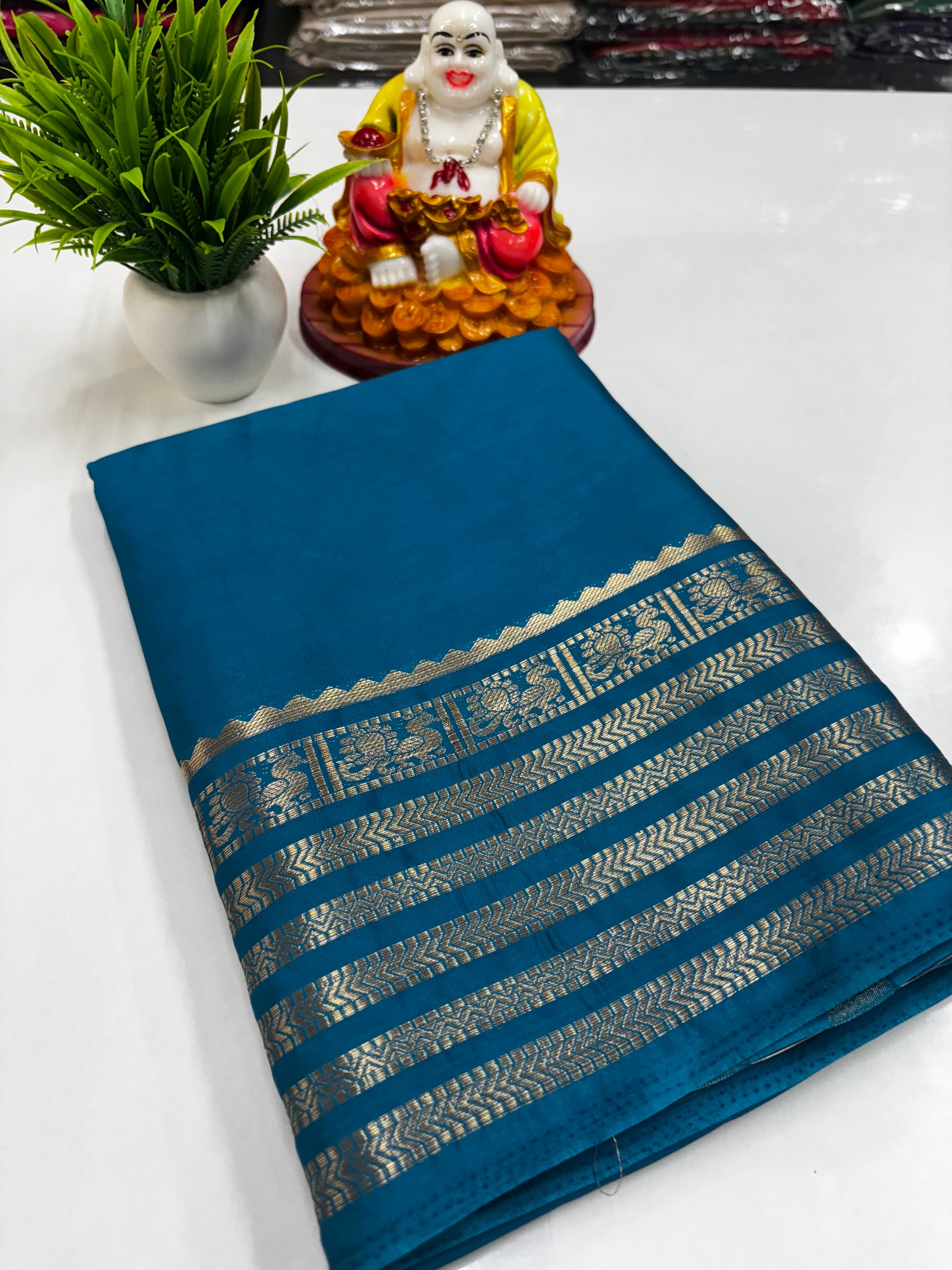Semi Crepe Saree with Small Beautiful Peacock Border