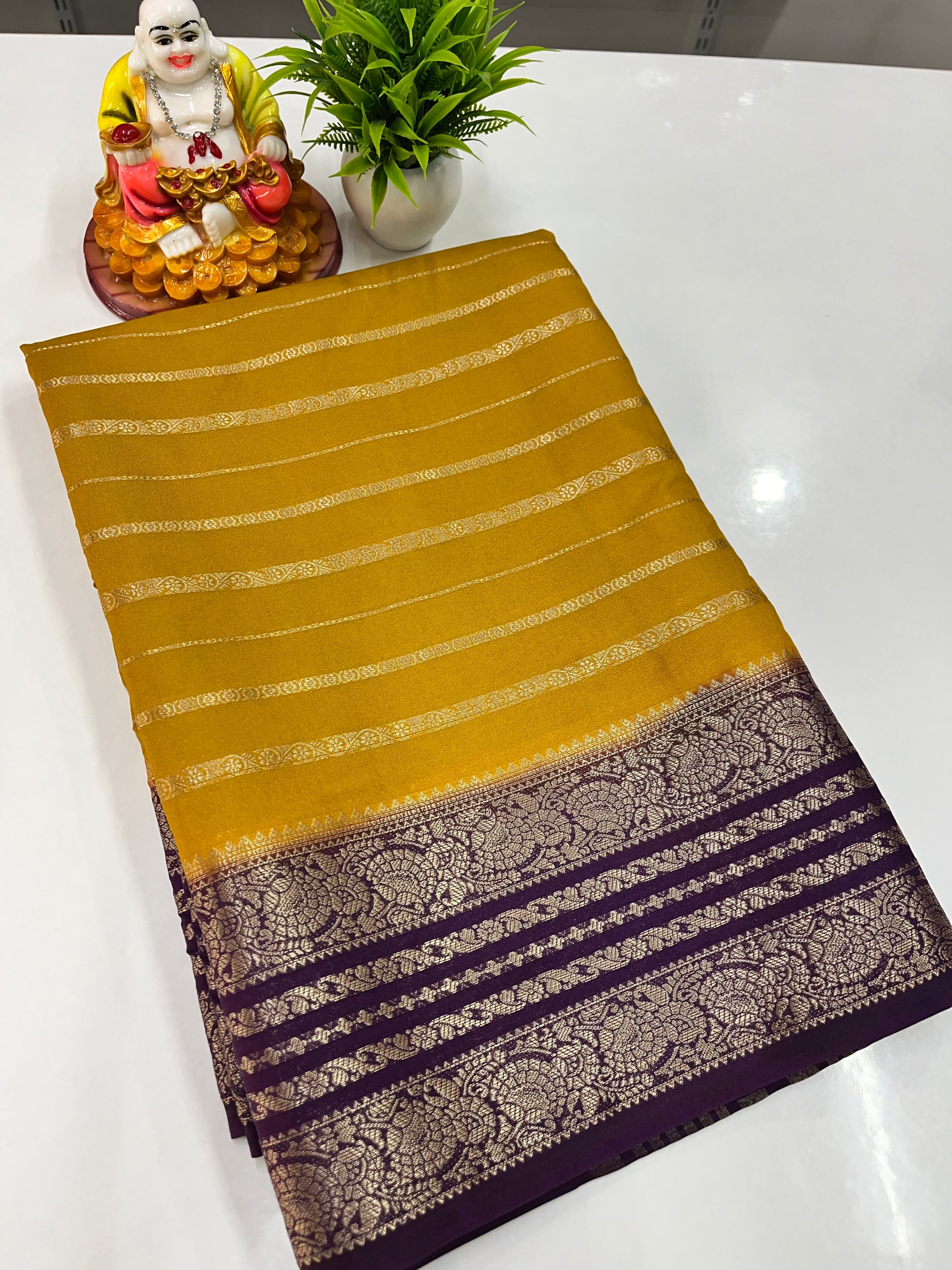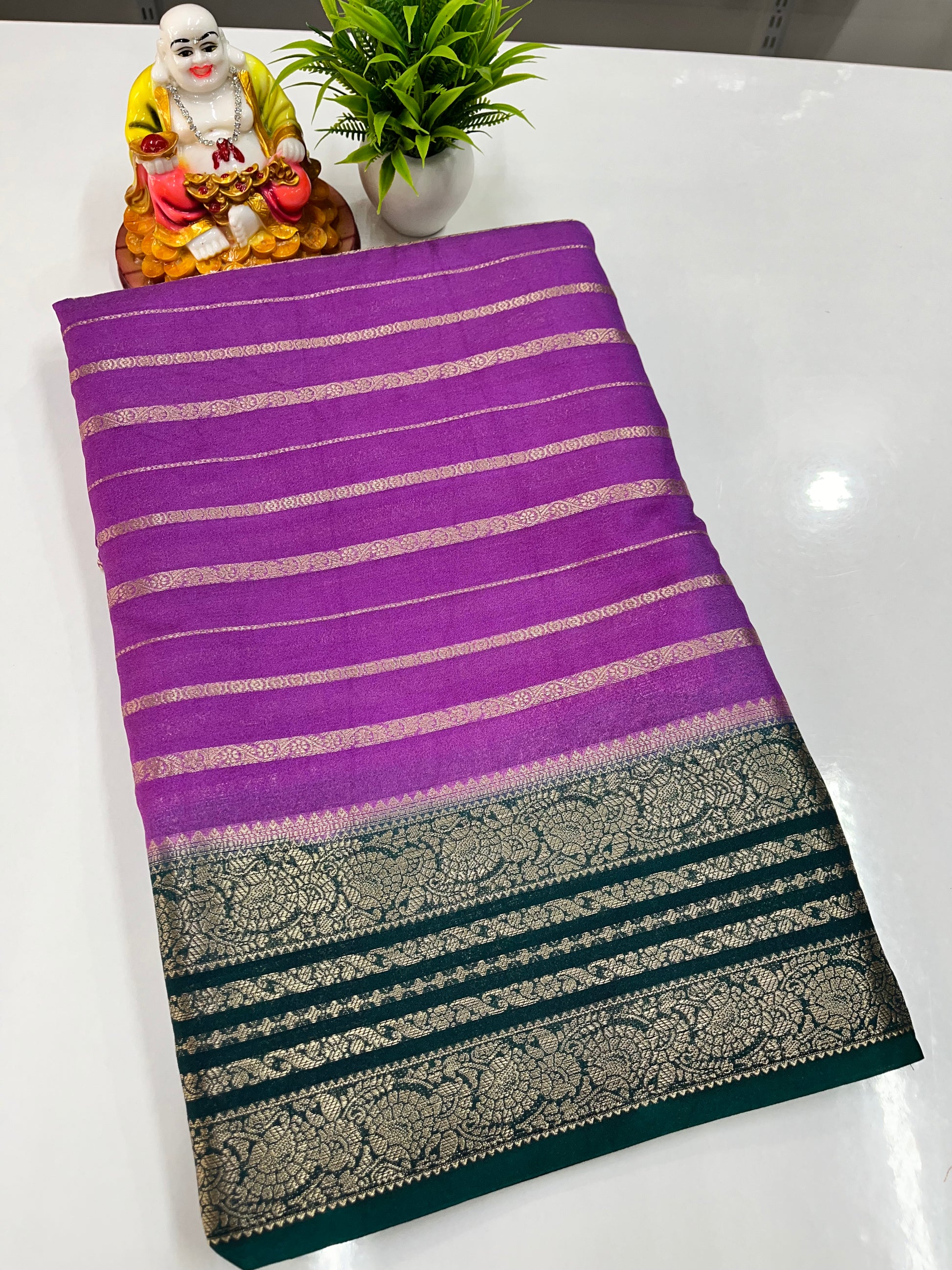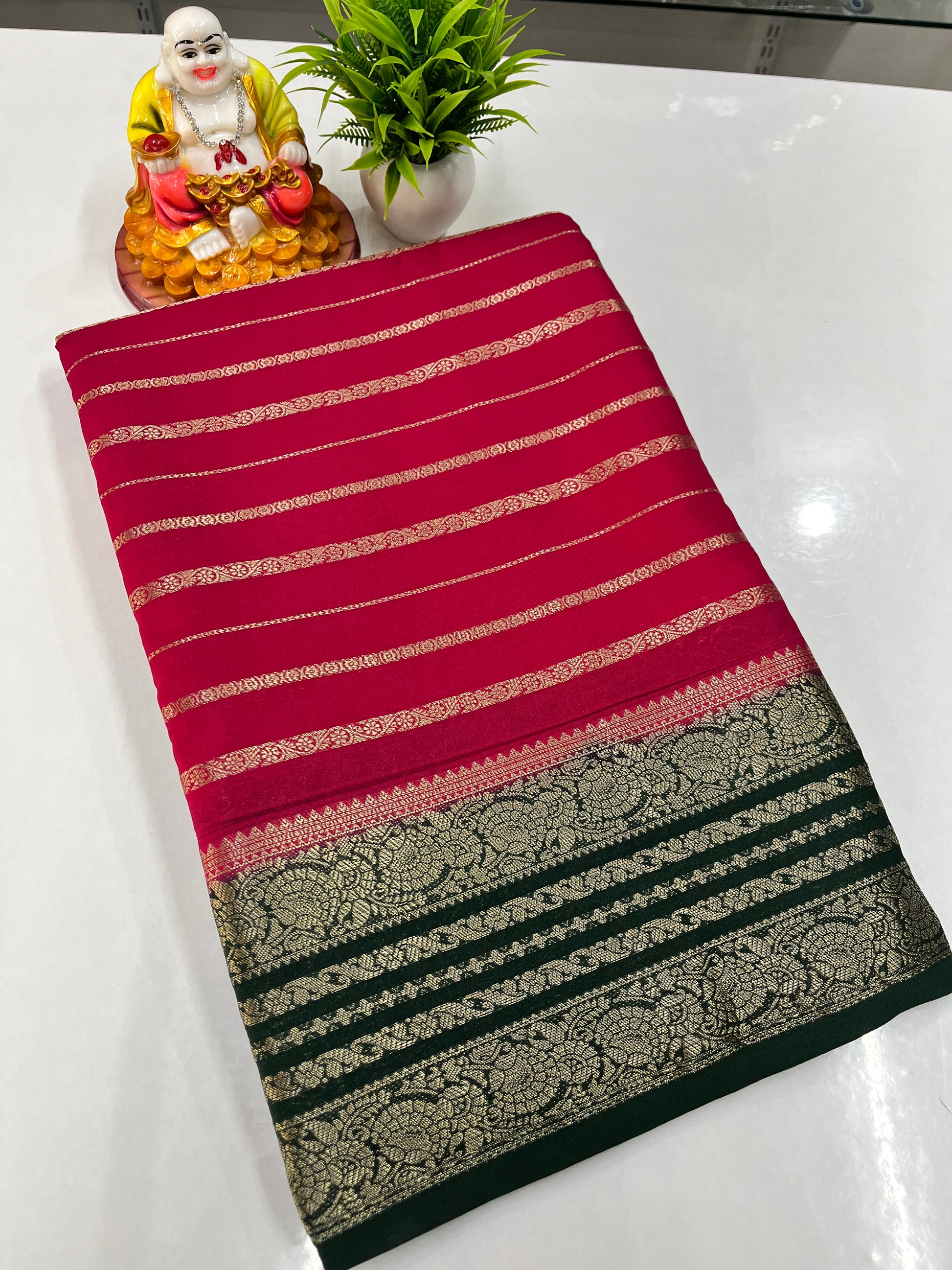 Semi Crepe Saree with Stripes and Beautiful Colors – Padmavathi Silks and Sarees