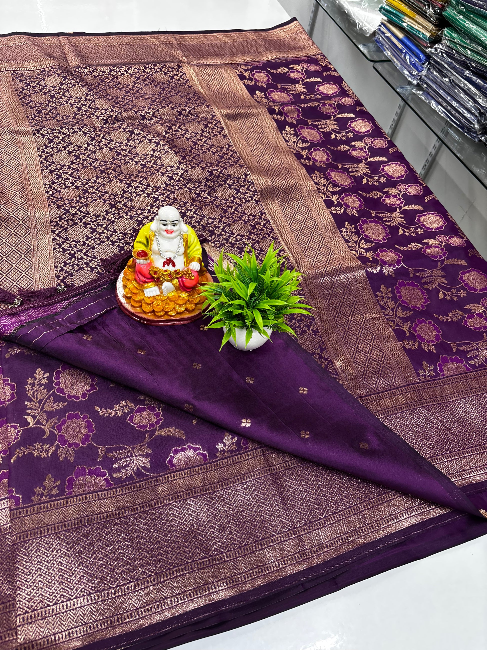 We specialize in Mysore Silk Semi Crepe Sarees along with Georgette, Dola Silk, and designer blouse collections in Raw Silk, Velvet, and Satin.